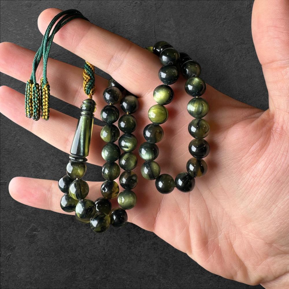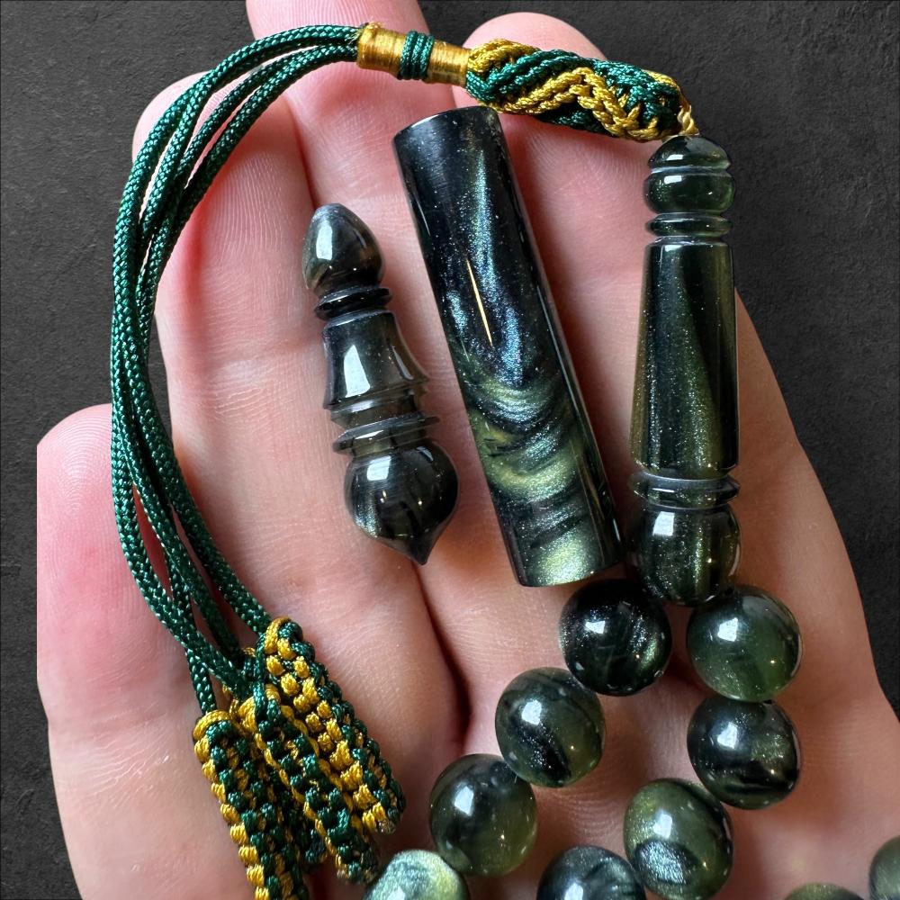 سبحة فاخرة مصنوعة من بكلايت تركي بجودة عالية، تم صبها وخراطتها في تركيا، باستخدام مواد فنلندية تعطيها تميز ولمعان راق.
