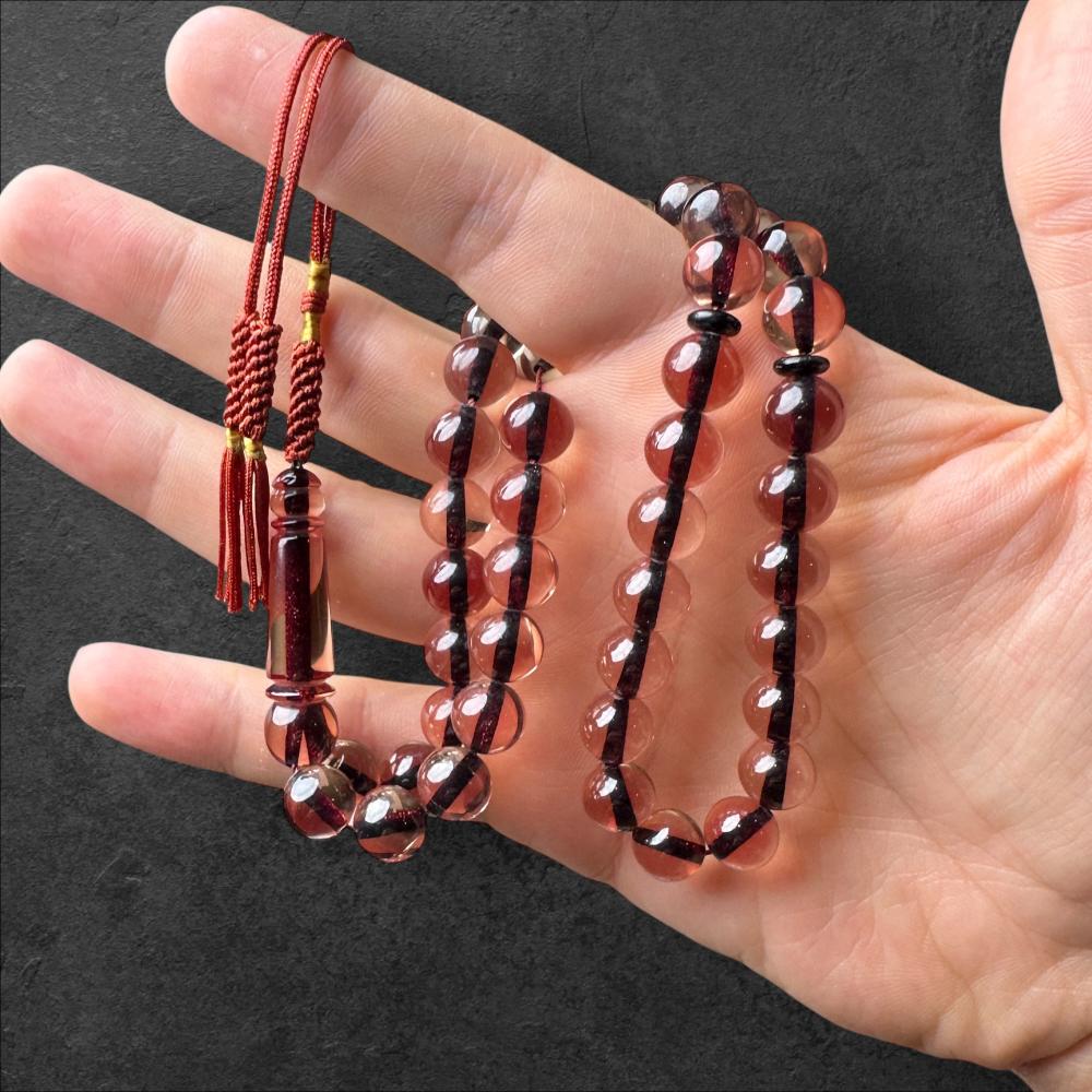 سبحة فاخرة مصنوعة من بكلايت تركي بجودة عالية، تم صبها وخراطتها في تركيا، باستخدام مواد فنلندية تعطيها تميز ولمعان راق.