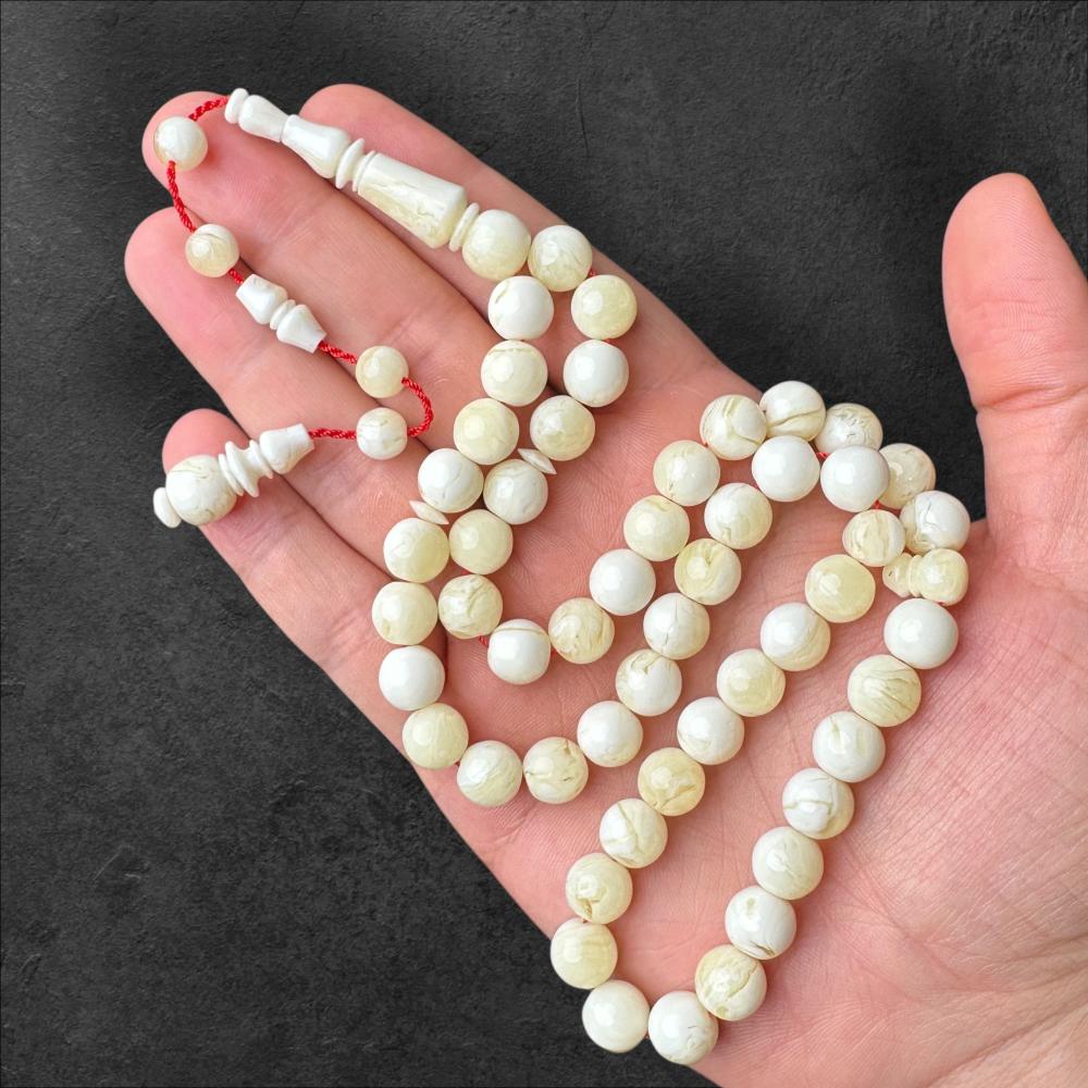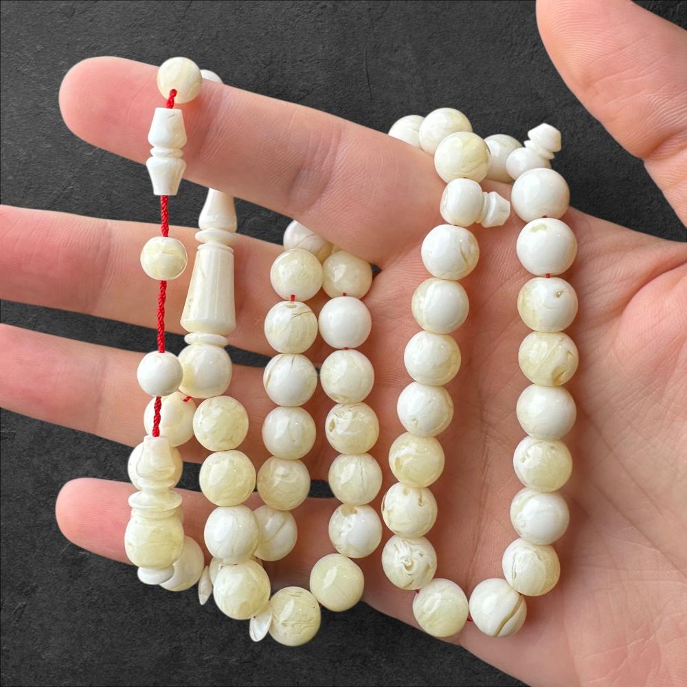 خامة المستكة من الخامات النادرة والمرغوبة في عالم السبح، حيث تتميز بالوانها الفريدة وملمسها الناعم . كل سبحة مستكة تختلف عن الاخرى
