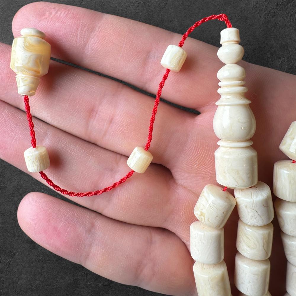 خامة المستكة من الخامات النادرة والمرغوبة في عالم السبح، حيث تتميز بالوانها الفريدة وملمسها الناعم . كل سبحة مستكة تختلف عن الاخرى