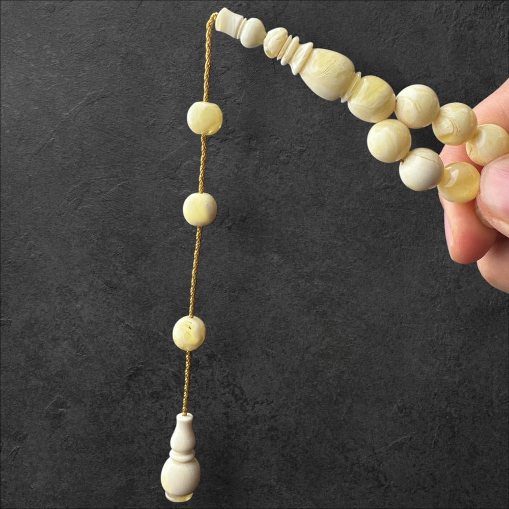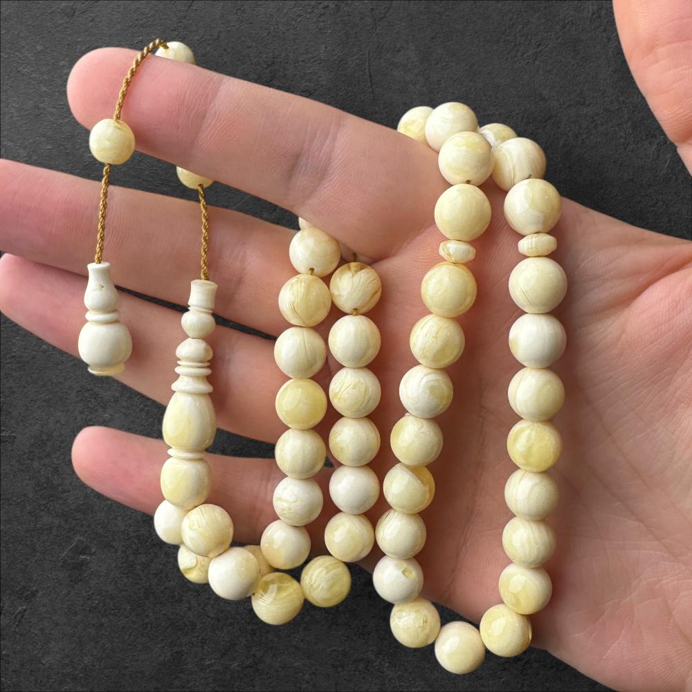 خامة المستكة من الخامات النادرة والمرغوبة في عالم السبح، حيث تتميز بالوانها الفريدة وملمسها الناعم . كل سبحة مستكة تختلف عن الاخرى